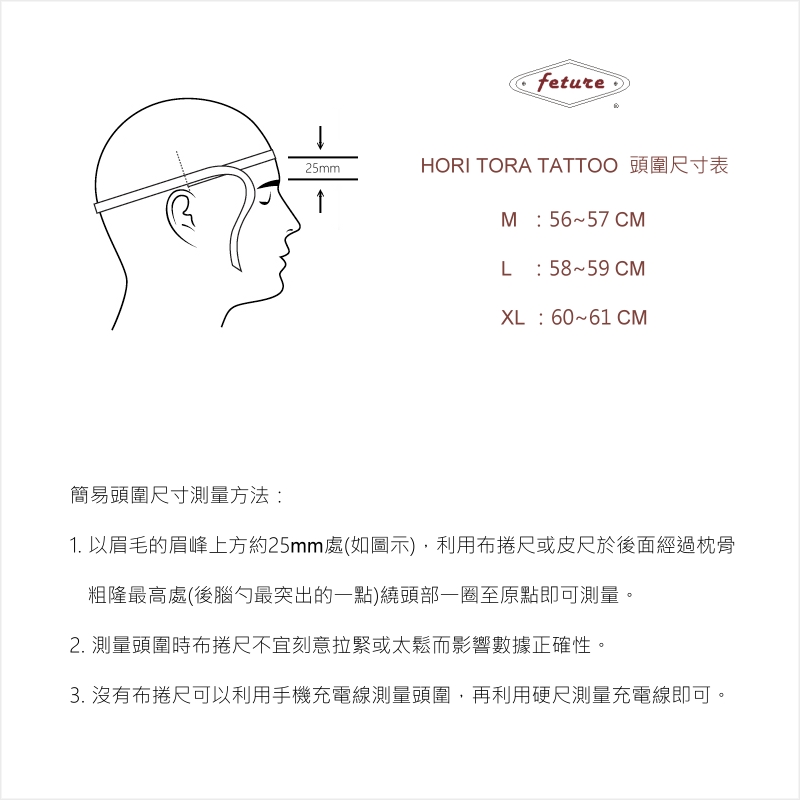 本次設計理念為「活出獨特」,以黑白兩色為主體,黑白兩色不是一種顏色,而是所有色光的結合,白色給人純淨、簡單、正直感,黑色帶來強硬、傑出的特性,以漠藍展現冷靜及強大的責任感,極簡線條搭配雙色刻劃出俐落個性,背面象徵彫虎輝煌與榮耀的日本家徽圖騰,讓此頂安全帽成為代表彫虎文化之經典作品! 每個文化皆代表著每個不同的歷史、藝術、紀念、宗教、潮流等意義,刺青更是一種跨語言的符號,以個人獨特的生活態度,烙印成生命的痕跡!Feture的經營理念,用簡單、內斂且保有自我的精神與Hori tora tattoo一起實踐,賦予了此頂帽子更深一層的涵義!