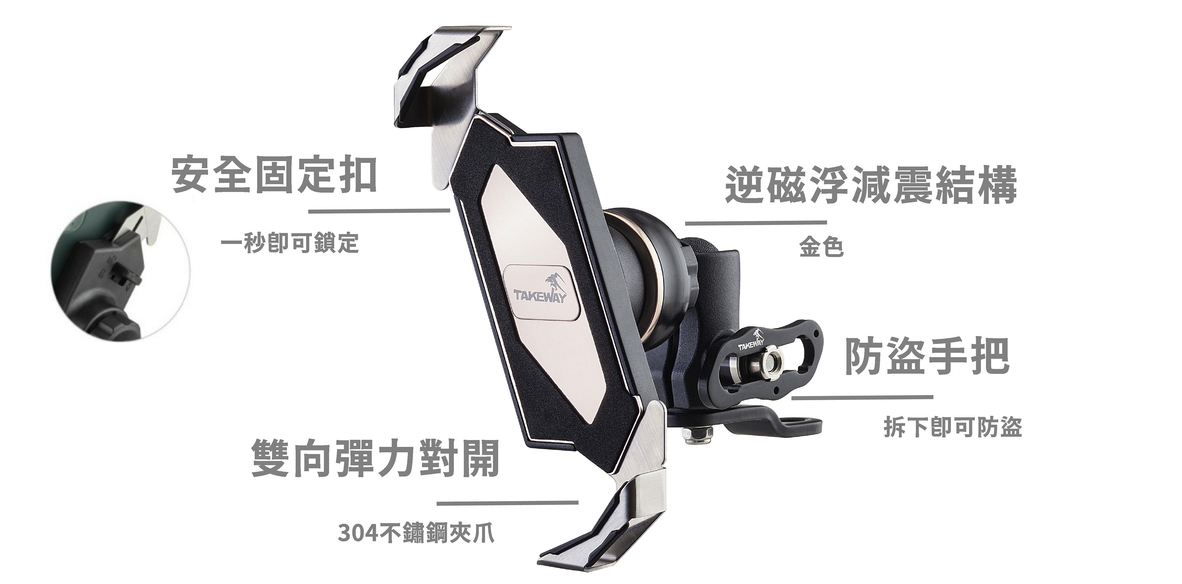 LA3-PH05 黑隼Z手機座 (含 T-H03防盜手把)、吸震泡綿、夾爪襯墊、華司墊片