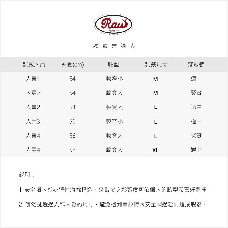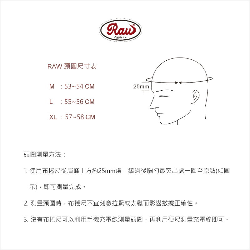 RAW品牌創立於2013年,在韓國、泰國 、越南 、日本等OFF-ROAD車圈內都可以看到它的風采,版型以小帽體設計,小頭專屬,戴出最佳身型比例,錐形下巴搭配山車帽該有的經典斜口排氣孔,是一頂喜愛70年代復古山車帽的車友們不可錯過的經典單品。